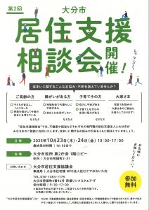 大分市居住支援協議会より、第2回居住支援相談会 開催のお知らせです!