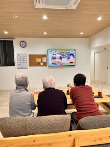 リビングでテレビを見ながらわいわい楽しそうにおしゃべり(^^♪